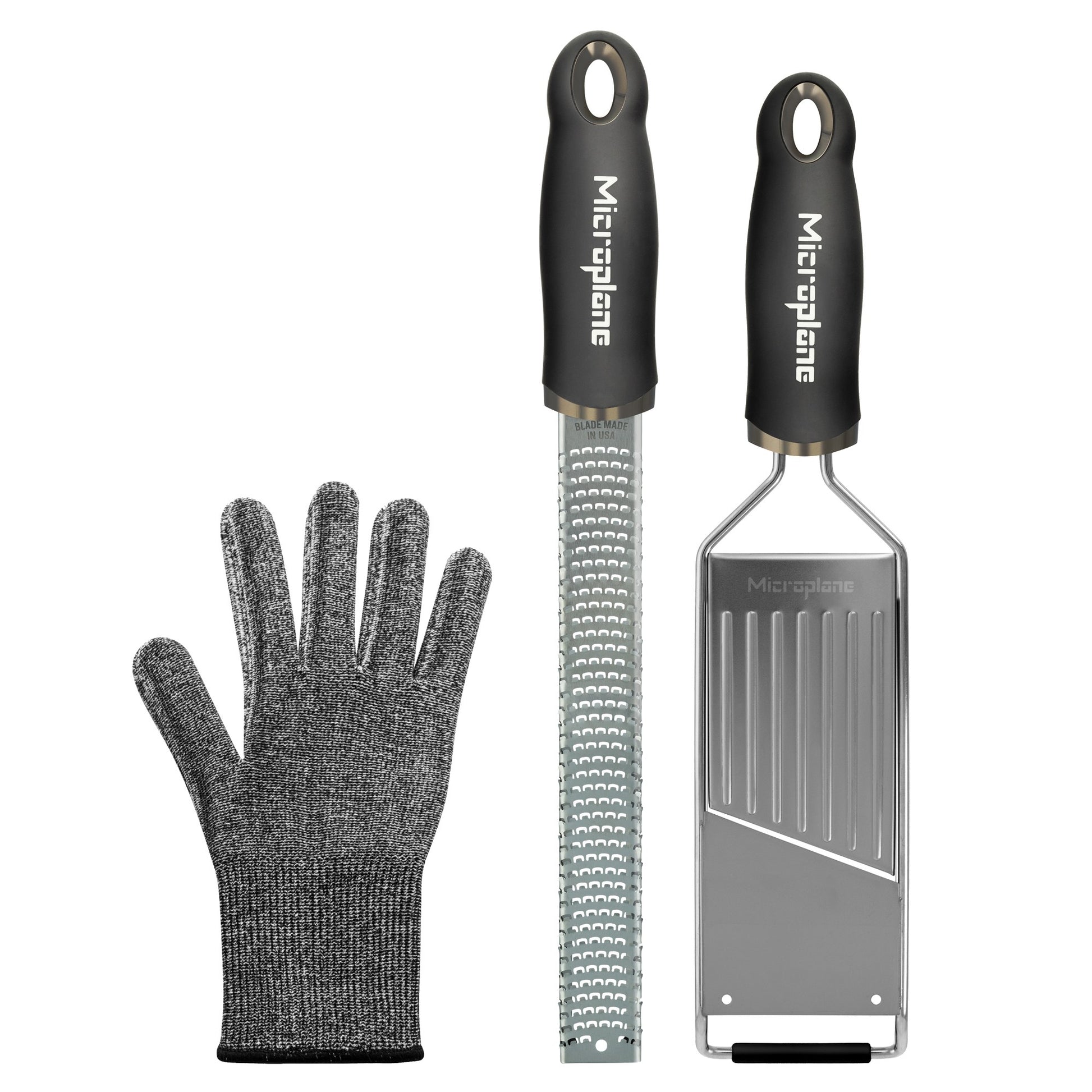 Microplane Gourmetreiben-Set mit Schutzhandschuh - 2 Reiben plus Handschuh Geschenkset