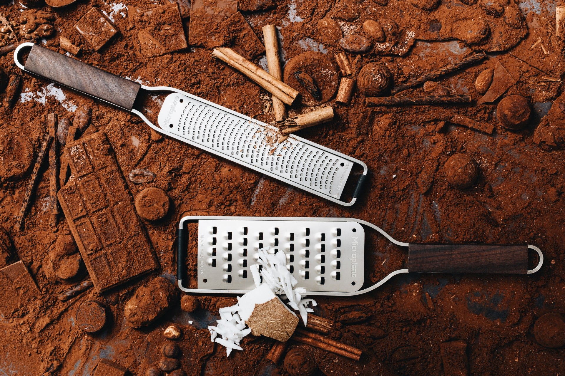Mit unserem Streben nach der perfekten Kombination aus Stil und Effizienz haben wir die raffinierte und exklusive Master Serie kreiert. Der elegante, anmutige und stylische Walnussholzgriff aus Kentucky, USA erinnert an den Ursprung der Microplane- Küchenreiben, die aus der Holzwerkstatt in die Küche gelangen.